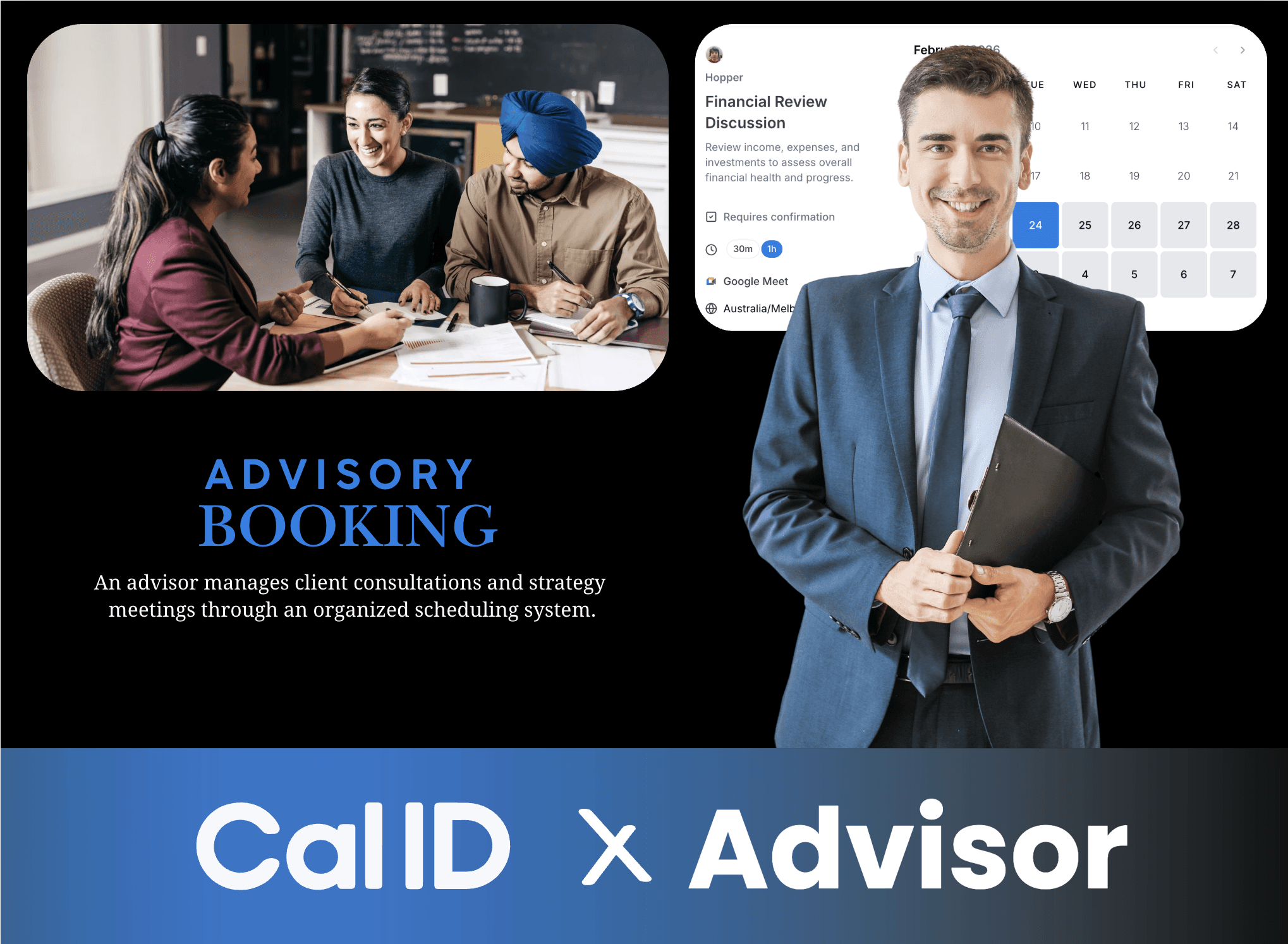 Cal ID is a free meeting scheduling software for advisors that makes client bookings simple and organised. Clients book through a clean, personalised page, while automated reminders and calendar sync keep your schedule accurate. Ideal for financial, investment, insurance, and business advisors, Cal ID helps you run smoother meetings, cut no-shows, and deliver a more professional client experience with less effort.