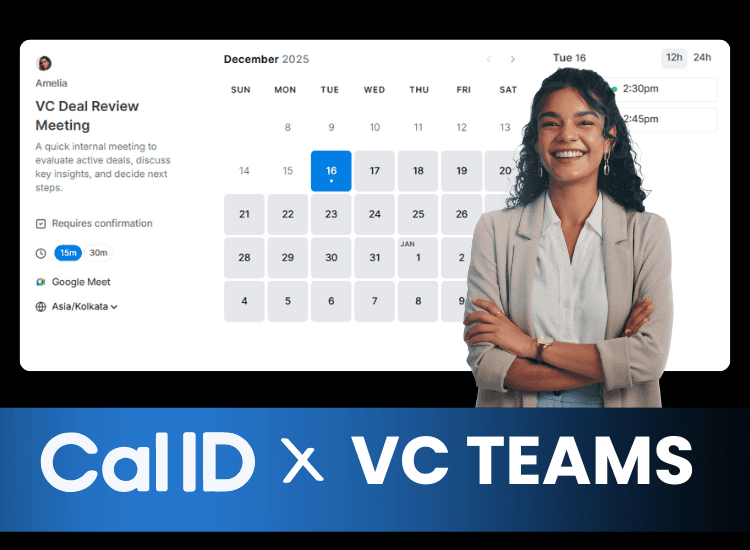 Cal ID is a perfect fit for venture capital teams' hectic workflow, where time and coordination matter most. It makes it easier for partners and associates to handle several conversations at once without missing anything, including founder calls, internal reviews, and LP meetings. Everyone stays in sync and ready thanks to shared team availability, explicit booking guidelines, and automatic updates. VC firms may now more easily concentrate on assessing prospects and developing solid founder connections rather than scheduling.